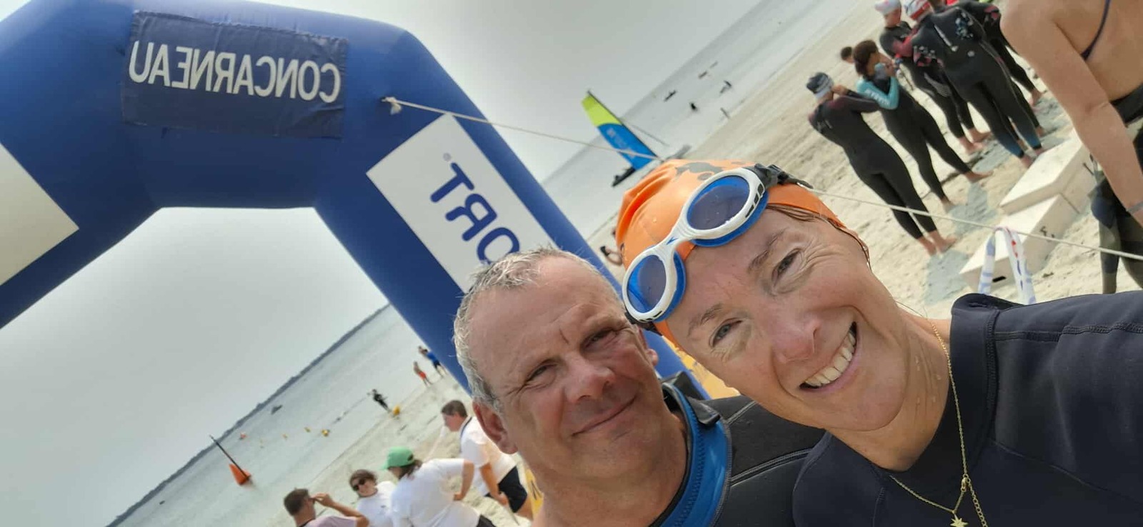 Sur le parcours Langoustin's cup (500 m natation) le couple Coste s’est laissé tenter par cette aventure qui constituait une 1ère expérience en nage en mer pour Séverine :