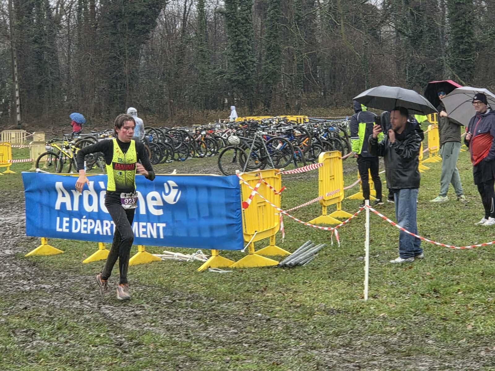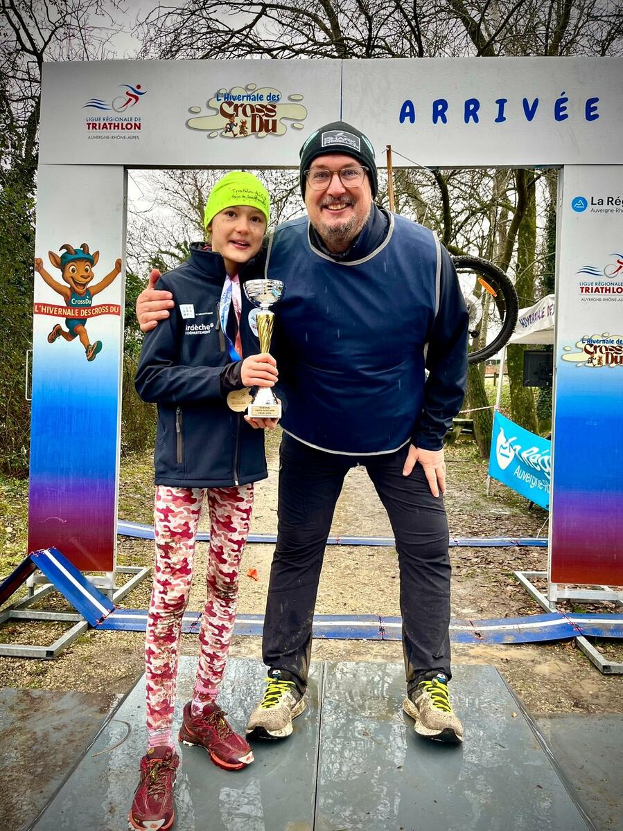 Les clubs de triathlon de Cruas et de Privas ont coorganisé le cross duathlon de ce samedi 17 janvier sous une météo pluvieuse ayant rendu des conditions difficiles et un sol extrêmement boueux et glissant pour les sportifs. C’est sous un déluge que les plus jeunes se sont élancés dès le matin. Sur la course 9-11 ans et un parcours de 500 m course à pied + 2 km VTT + 500 m course à pied, c’est Adèle CROIZIER chez les filles qui remporte la victoire en 12’13’’ et s’offre également le titre de championne départementale de l’Ardèche. Sur le format XS (2 km course à pied + 5,5 km VTT + 1 km course à pied), c’est le jeune Maxence BOGIRAUD en 19’46’’ dans la catégorie minime qui s’octroie une nouvelle 1ère marche sur le podium et qui décroche aussi un nouveau titre de champion départemental ! Enfin, sur la distance S (4 km course à pied + 11 km de VTT + 2 km de course à pied) chez les féminines saluons la jolie 3ème place de Noémie ROUBY chez les seniors en 47’06’’qui lui permet, à elle également, de remporter le titre de championne départementale !