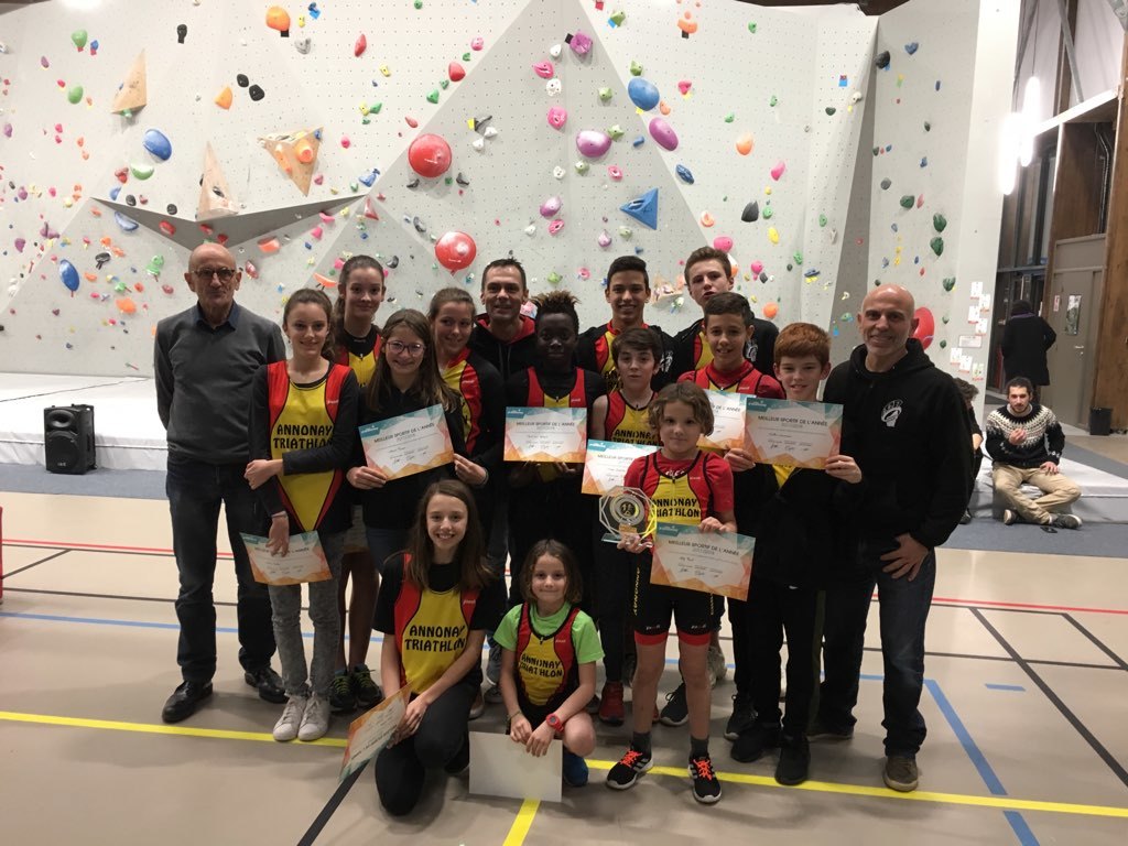 L’équipe des jeunes triathlètes se classant 6ème sur 96 clubs Auvergne Rhône Alpes (AURA) et 1ère équipe Drôme/Ardèche au challenge jeunes fut récompensée.