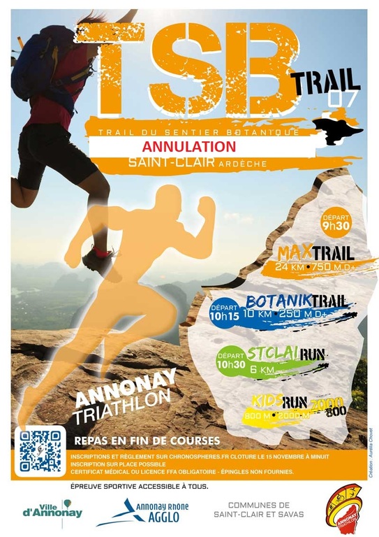 En raison de la crise sanitaire, nous avons le regret de vous annoncer l'annulation pour cette année 2020 de notre Trail du sentier Botanique devant se dérouler le dimanche 22 Novembre.