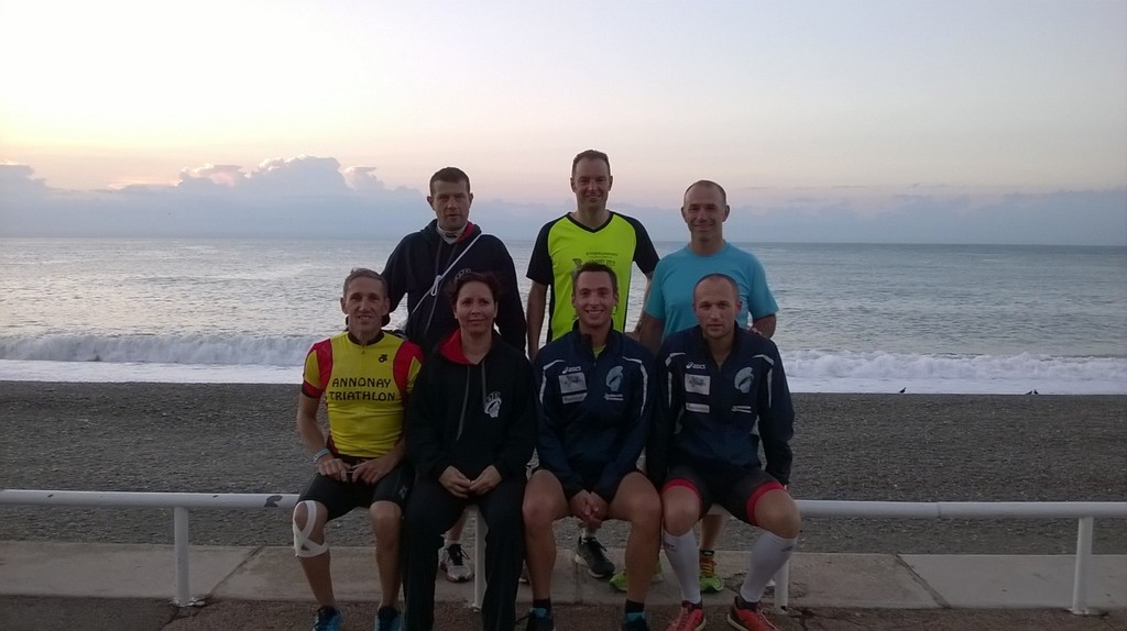 Pascal et Chantal Combette, Stéphane Visentin, Mohamed Mezgueldi, Dominique Boirayon, Benoit Larnaud, Gaetan Dedieu et Denis Combe étaient tous à Nice ce week end pour le dernier triathlon de la saison. Au vu des évènements météorologiques sur les Alpes Maritimes, le préfet a très logiquement fait annuler l’épreuve. Nos huit compères ont donc effectué un petit footing sur la promenade dimanche matin avant le retour en terre ardéchoise.