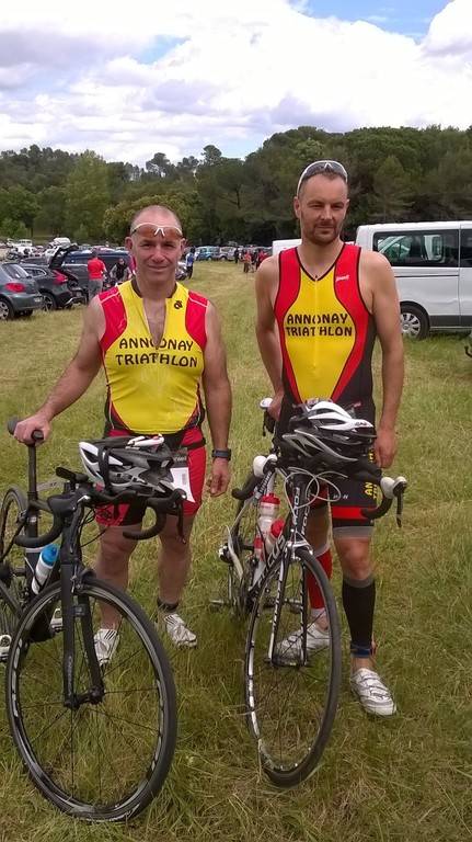 Au départ du lac de cavayère pour 1600m de natation avec 40kms de vélo avec un fort vent et 10kms à pied en deux boucles.