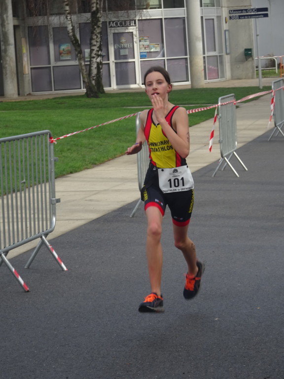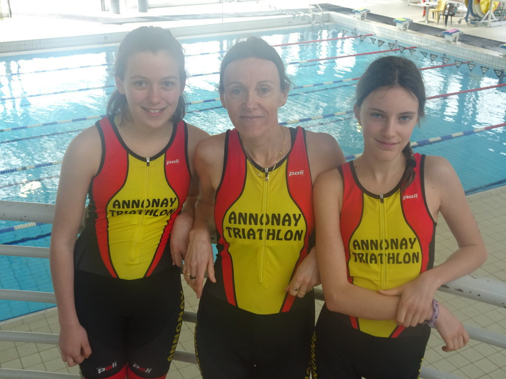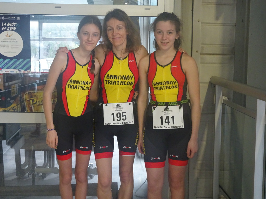 Malgré les 4 petits degrés de ce dimanche 18 mars, 3 triathlètes annonéennes avaient fait le déplacement pour la 6ème édition de l’aquathlon de Grenoble. Dès 9h30 sur ce beau bassin de 50m débutait l’épreuve XS correspondant à 300m de natation suivi de 2kms de course à pied le long des berges de l’Isère. C’est Noémie Rouby qui dans la catégorie des benjamins prenait le 1er départ : elle termine en 14’55’’ se plaçant en 5ème position. Louise Roland enchaine avec les Minimes avec un temps de 16’05’’ s’emparant de la 6ème place. Enfin Laurence Rouby dans la 3ème vague contenant l’ensemble des autres catégories (Cadettes à Vétérantes) réalise un temps de 16’36’’ accrochant une 6ème place.