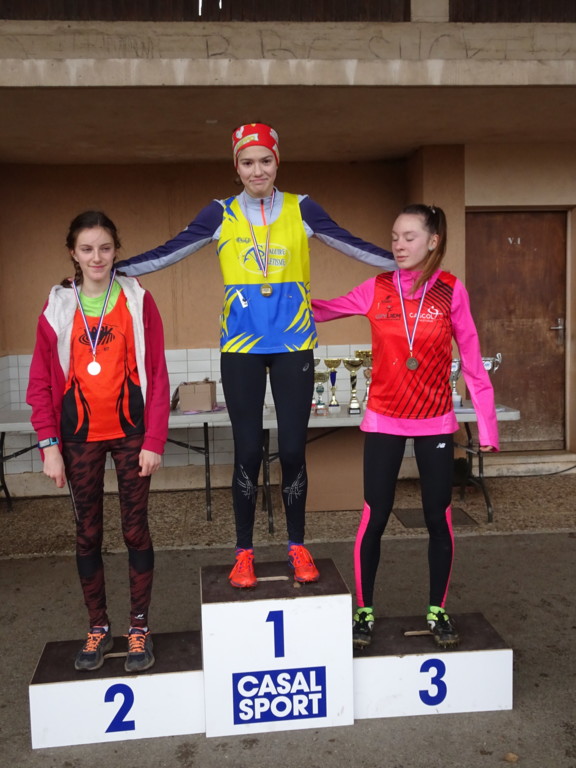 Chez les jeunes, sur un parcours de 3 kms, dans la catégorie minime, sous les couleurs de l’EATT Noémie ROUBY remporte une très belle 2ème place en 12’23’’ juste derrière Emina Alibegovic de nationalité anglaise rattachée au club de Caluire et Cuire. Noémie se qualifie ainsi pour les ½ finales qui se dérouleront aux alentours de Vichy le 17 Février.