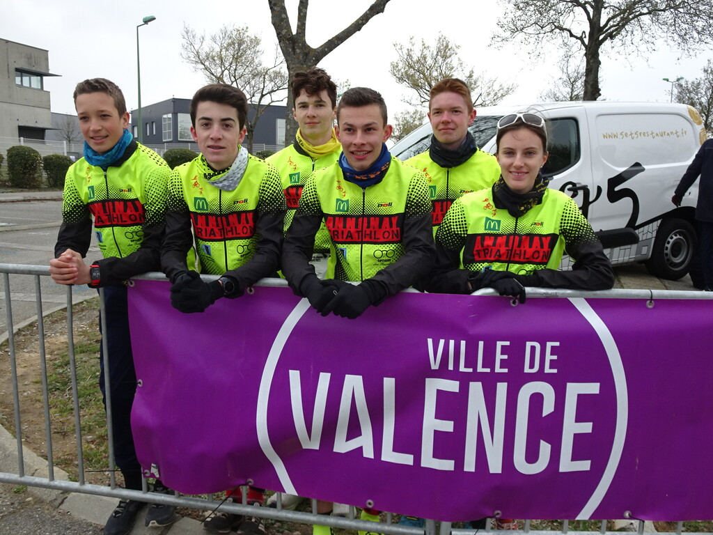 Notre délégation de 4 jeunes cadets s’est élancée sur un format S avec 5km de course à pied, 20km de vélo puis 3 km de course à pied. Pour leur seconde participation au duathlon de Valence, Timéo Chatelas Parat et Eddy Charra terminent respectivement à la 39e et 41e place en des temps assez proches de 1h10’59’’ et 1h11’15’’. Nous donnerons ensuite une mention spéciale à Melvyn Betton qui pour son premier duathlon, termine 60e en un temps de 1h15’21’’ avec une superbe partie vélo. Enfin, on notera la participation de Mathis Raffard qui malgré plusieurs crampes arrive à finir sa course en 1h20’36’’ à la 63e place. Du côté féminin, chez les cadettes, sur ce même format, Noémie Rouby, seule fille du club engagée, réalise une belle performance en se classant 7e en 1h16’45’’ et décroche ainsi son billet pour la finale du championnat de France. Enfin, chez les minimes, sur le parcours XS (2,5 km de course à pied + 12 km de vélo + 1,5 km de course à pied) Valentin Zietek pour son premier duathlon termine à la 38e place en 41’32’’.