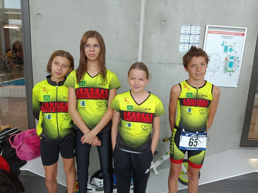 Malgré la pluie, 4 de nos jeunes, les 2 sœurs Aliya et Lina Baïba, Faustine Betton et Maxence Bogiraud se sont rendus dans le sud de l’Ardèche pour participer à la 2ème édition de l’aquathlon de Privas organisé par le club de triathlon de Privas.