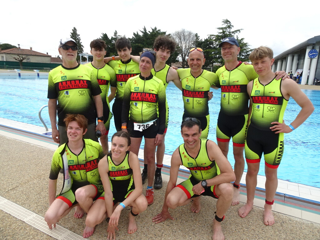 Après une semaine de stage triathlon intensif, notre équipe de jeunes cadets/juniors composée de Noémie Rouby, Gabriel Bacquenois, Matis Bouvard, Melvyn Betton et Mathis Raffard s’offre une très belle performance et s’empare de la 3ème place au scratch mixte en 1h18’14’’et se retrouve également 1ère équipe jeunes. Le groupe masculin constitué de Aubin et Jean-Marie Vocanson, Hervé Roland et Mikaël Bouvard s’octroie une 26ème position chez les hommes en 1h18’23’’. Enfin, le binôme Catherine Combe (pour la partie course à pied) et Thierry Place (pour la natation et le vélo) en relais se classe 10ème mixte et 1er duo vétéran en 1h24’54’’.