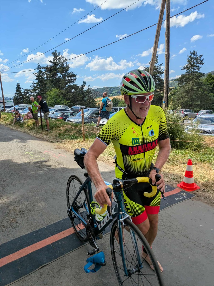 Thierry Place, sur le format S (750 m natation +20 km vélo + 5 km course à pied) se classe 63e au scratch et 3e de sa catégorie avec un temps de 1h36’18’’